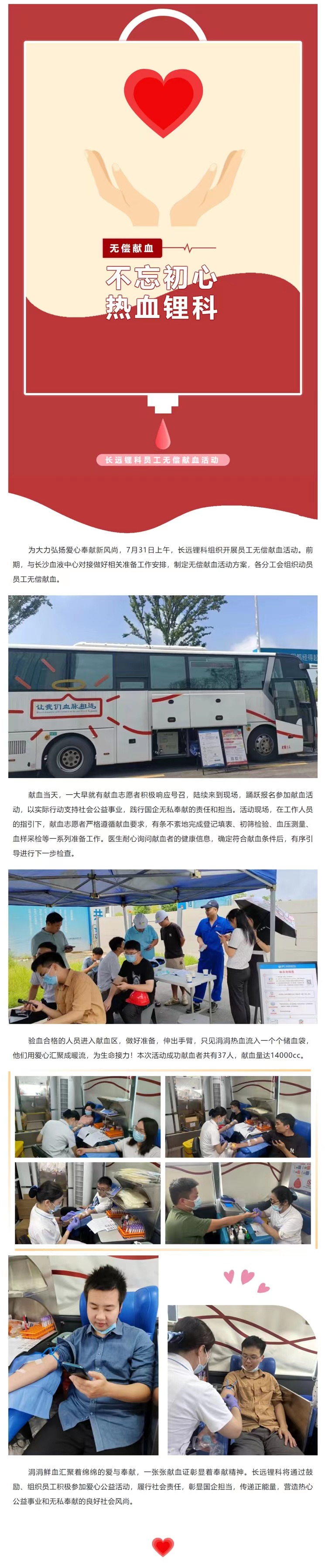 不忘初心 熱血鋰科 —— 長遠鋰科開展員工無償獻血活動