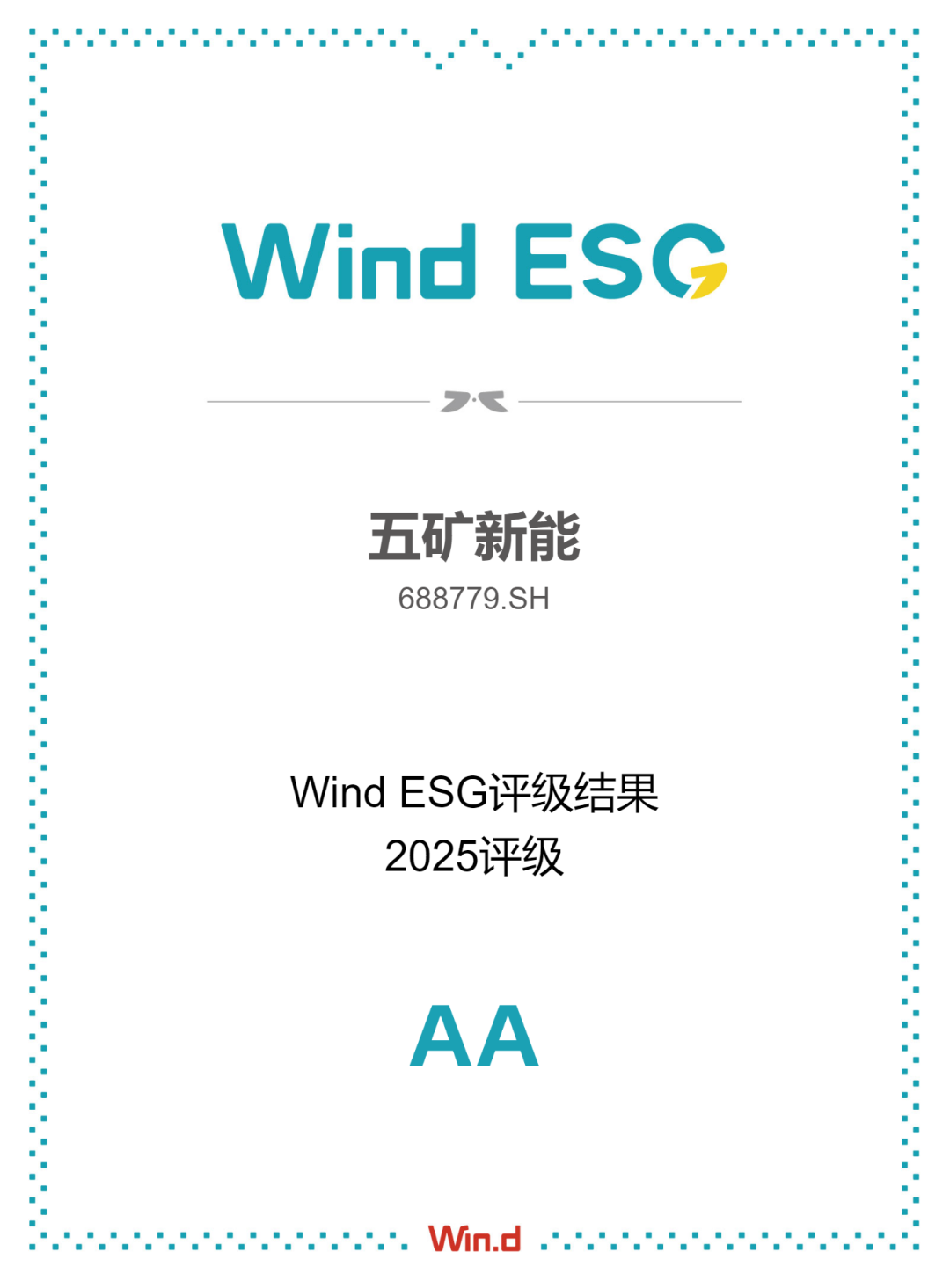 近日,五礦新能源材料(湖南)股份有限公司(證券代碼:688779.SH)在2024年度萬得(Wind)ESG評級中實現顯著提升,由BBB級躍升至AA級,成功躋身國內同行業ESG評級最高梯隊。此次評級提升充分彰顯了公司在環境責任(E)、社會責任(S)及公司治理(G)三大維度的卓越表現,標志著公司在可持續發展領域的工作取得較好成果。